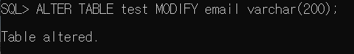 ALTER TABLE 테이블명 MODIFY 컬럼명 데이터타입;