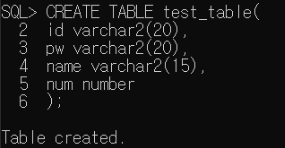 (1) 테이블 생성