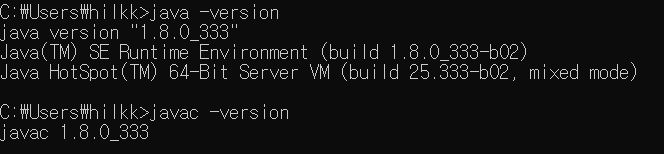 (2) 명령프롬프트 cmd로 JAVA 버전 확인하기