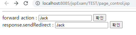 <!--forward 액션은 최종 페이지에 파라미터를 함께 전달함, 최초 요청된 페이지 url이 표시됨 -->