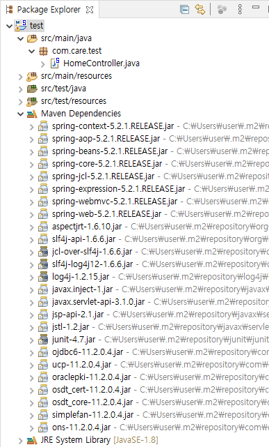 | Maven Dependencies | pom.xml 파일에 작성된 라이브러리들이 존재해있다. |